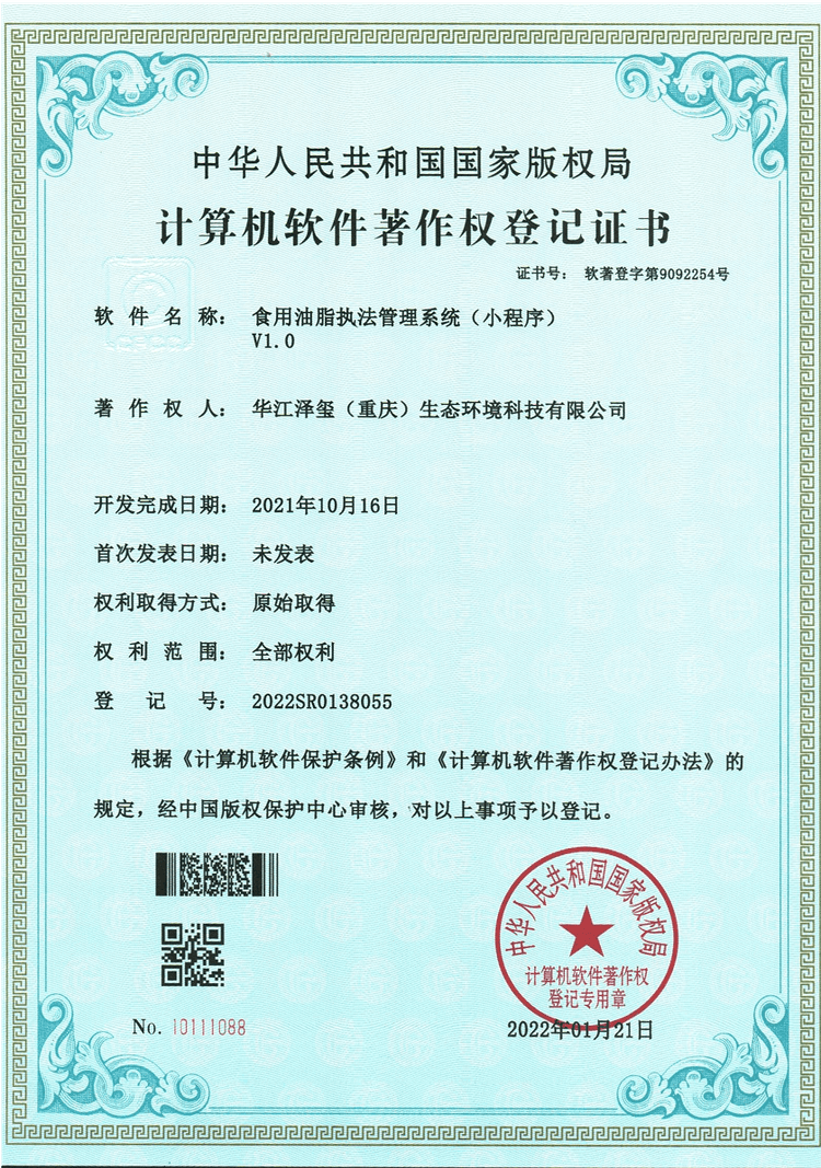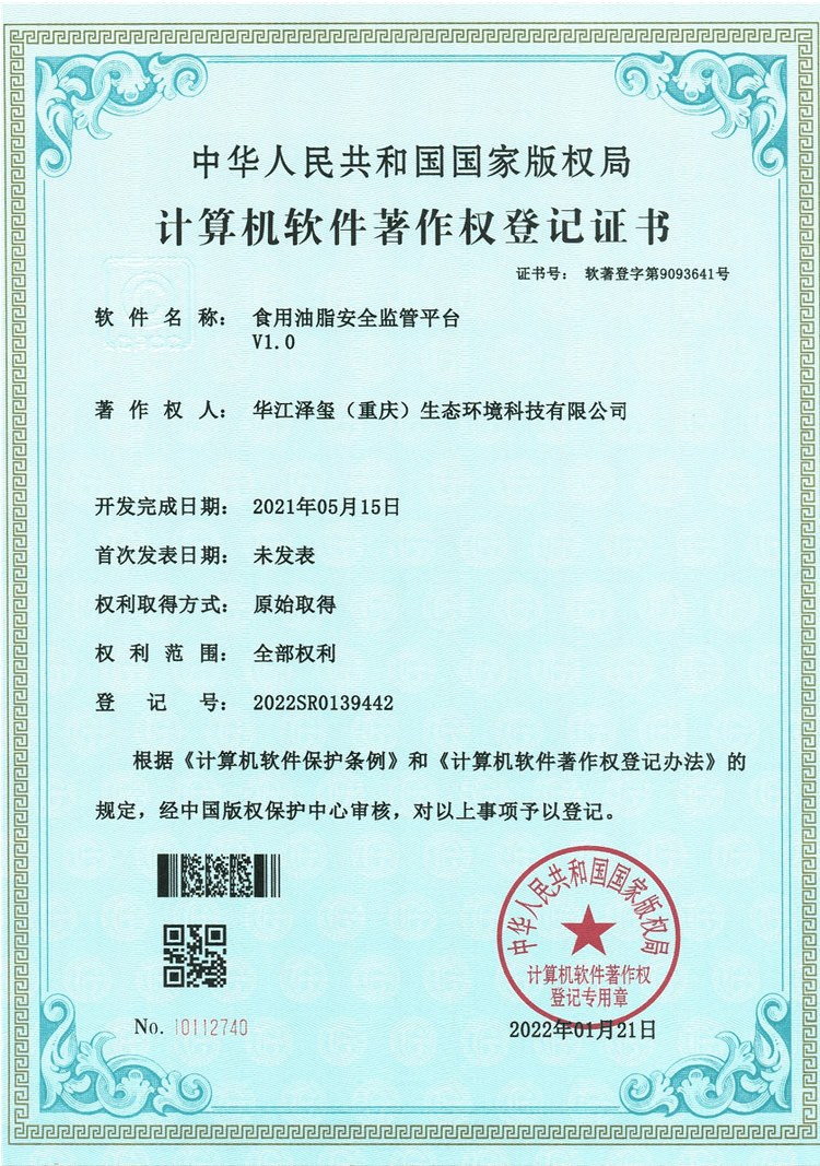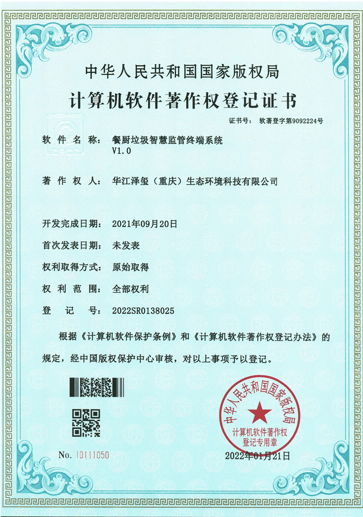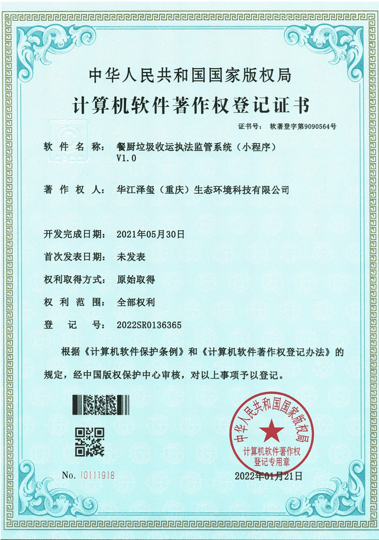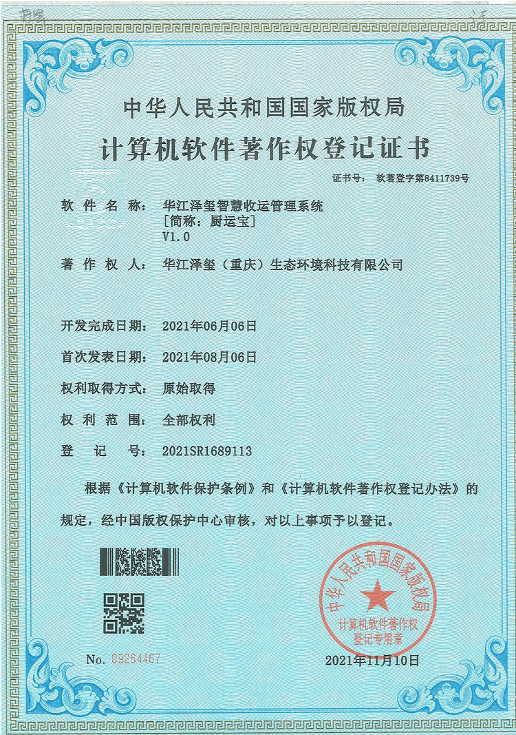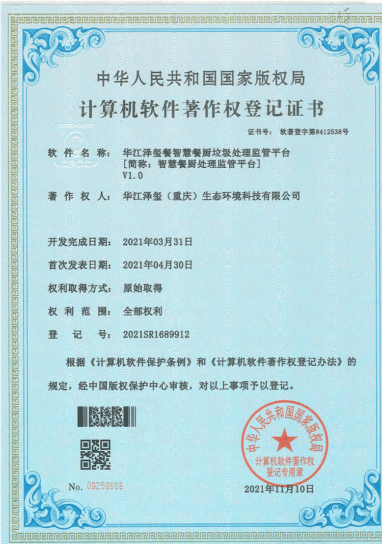 华江泽玺餐智慧餐厨垃圾处理监管平台[简称:智慧餐厨处理监管平台]v1.0