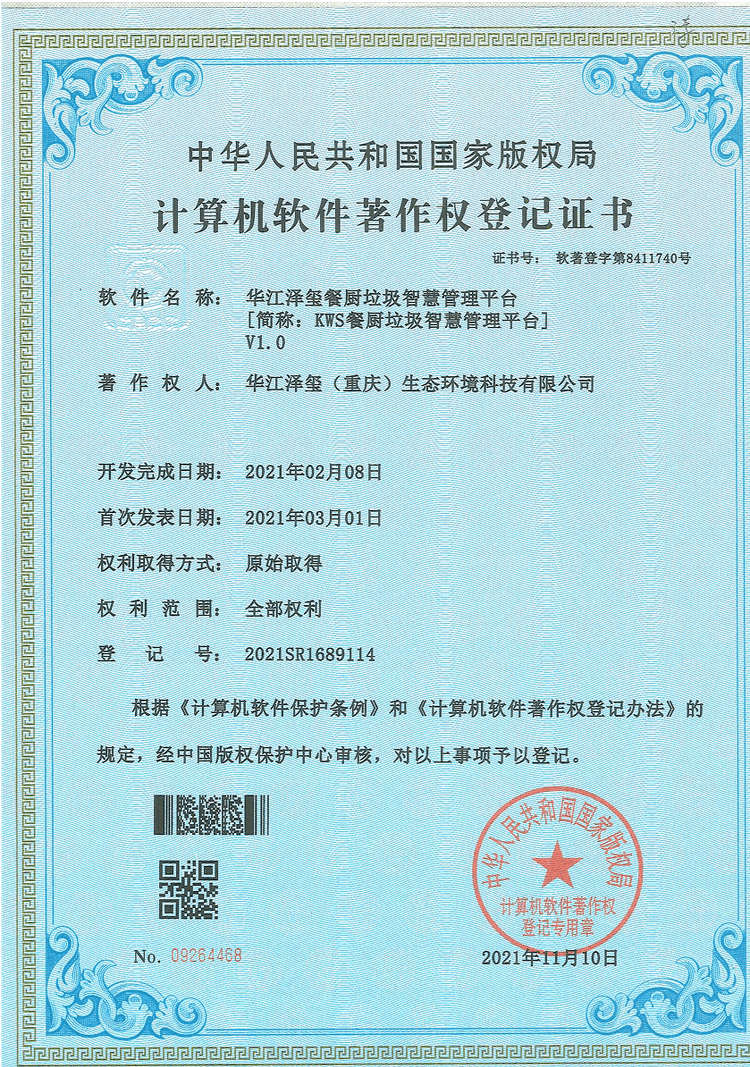 华江泽玺餐厨垃圾智慧管理平台[简称:KWS餐厨垃圾智慧管理平台]v1.0