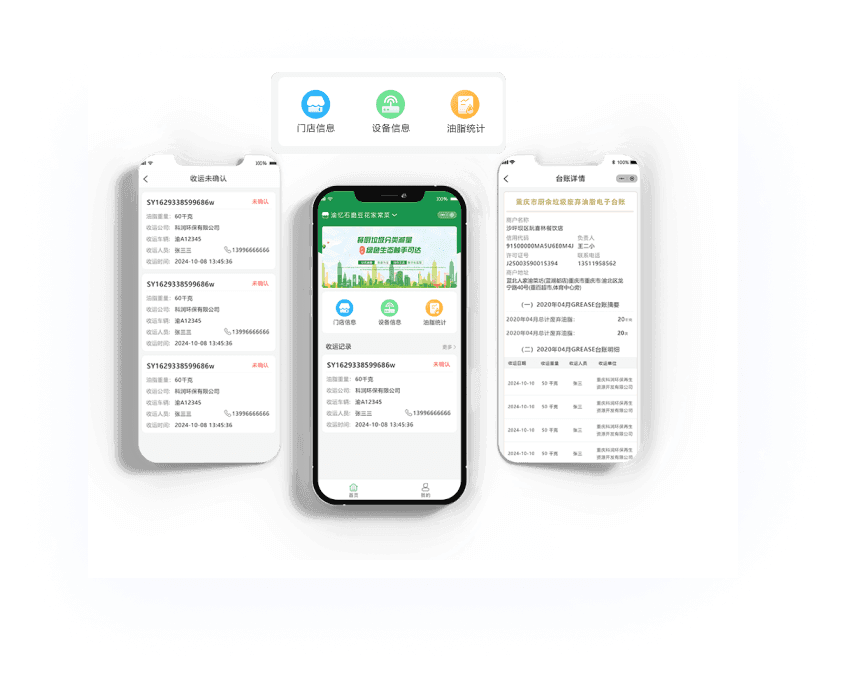 自动关联油水分离器称重数据、收运记录,生成符合《餐厨垃圾管理台账》标准的电子文档。避免手工记录的繁琐和错误,电子台账的优势包括数据不可篡改、便于追溯